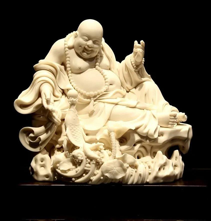 蘇清河《觀魚戲珠彌勒》瑩玉紅▲