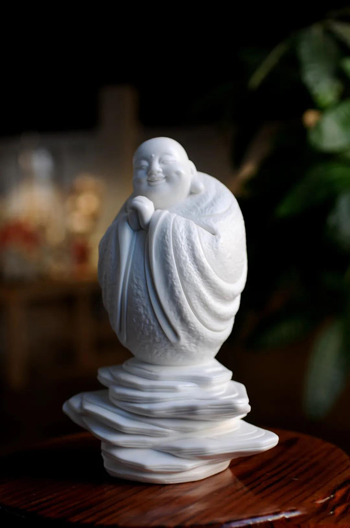 林建平出生在有“三大古瓷都”、“中國瓷都·德化”之稱的福建德化,在瓷都德化瓷藝巨匠群體及千年的傳統(tǒng)陶瓷文化熏陶下,從小就耳濡目染的他對瓷藝產(chǎn)生了濃厚的興趣 ,也種下了陶瓷之緣的種子。林建平自幼就酷愛陶瓷雕塑,特別對德化傳統(tǒng)陶瓷佛像有著超乎常人的興趣,1999年完成學業(yè)后就開始專注像佛創(chuàng)作,10多年來他非常努力地吸收著陶瓷技藝,探索陶瓷藝術的真諦,專研于觀音、彌勒等傳統(tǒng)佛像,為了更好地創(chuàng)作自己的作品,2012年,林建平創(chuàng)辦了福建省德化縣建平瓷藝研究所,功夫不負有心人,經(jīng)過10多年的學習和創(chuàng)作,林建平創(chuàng)作出了近百款陶瓷佛像作品,其造型務實、 嚴謹、質(zhì)感強烈、線條優(yōu)美,林建平的作品除繼承傳統(tǒng),還敢于創(chuàng)新,他把傳統(tǒng)佛像制作工藝與自我淨心感悟有機結合,創(chuàng)造出莊嚴、肅穆、慈悲,又具有現(xiàn)代美感的作品.經(jīng)過多年的學習創(chuàng)作,如今的林建平在瓷都德化已經(jīng)小有名氣,其作品多次在評比大賽中獲得金、銀、銅獎,被多家博物館和廣大陶瓷藝術愛好者收藏,并博得一致好評。相信以他十幾年如一日的執(zhí)著創(chuàng)作精神,今后還將創(chuàng)作出更多的優(yōu)秀作品,綻放在瓷都德化瓷壇,成為新的后起之秀。