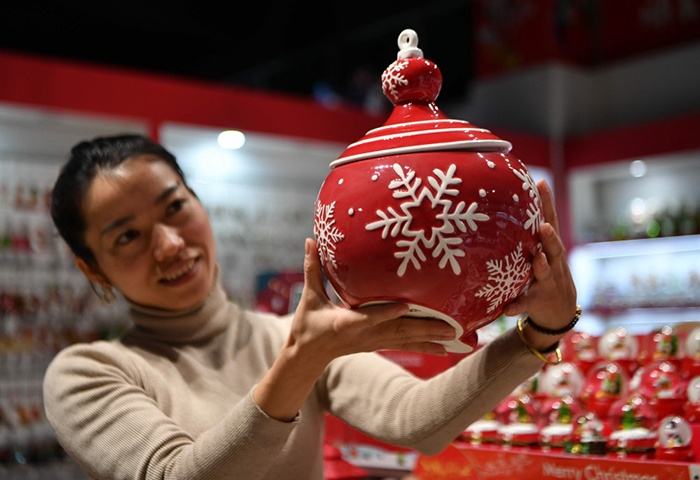 “今年國外的圣誕訂單還不錯,有關圣誕節(jié)的出口工藝品,我們9月底已經全部發(fā)完貨。”鄭鵬飛介紹,這些工藝品10月就擺上歐美商場貨架,將持續(xù)銷售到年底。