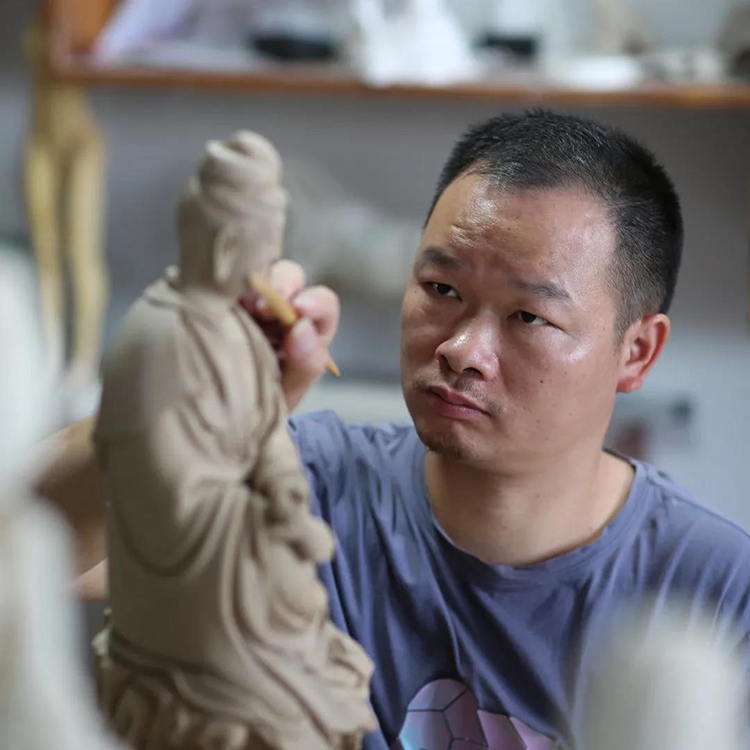 本次雙年展以弘揚匠心,致敬傳統(tǒng)為主題,傳統(tǒng)題材自然而然成為蘭全盛的首選。但對蘭全盛而言,觀音彌勒之類的題材可能難以更上一層樓,老子是道家的代表性人物,也是人們所熟知的題材,比起觀音彌勒更加具有突破的創(chuàng)作空間,更能體現(xiàn)一些新的東西。所以蘭全盛選擇了老子這個題材。