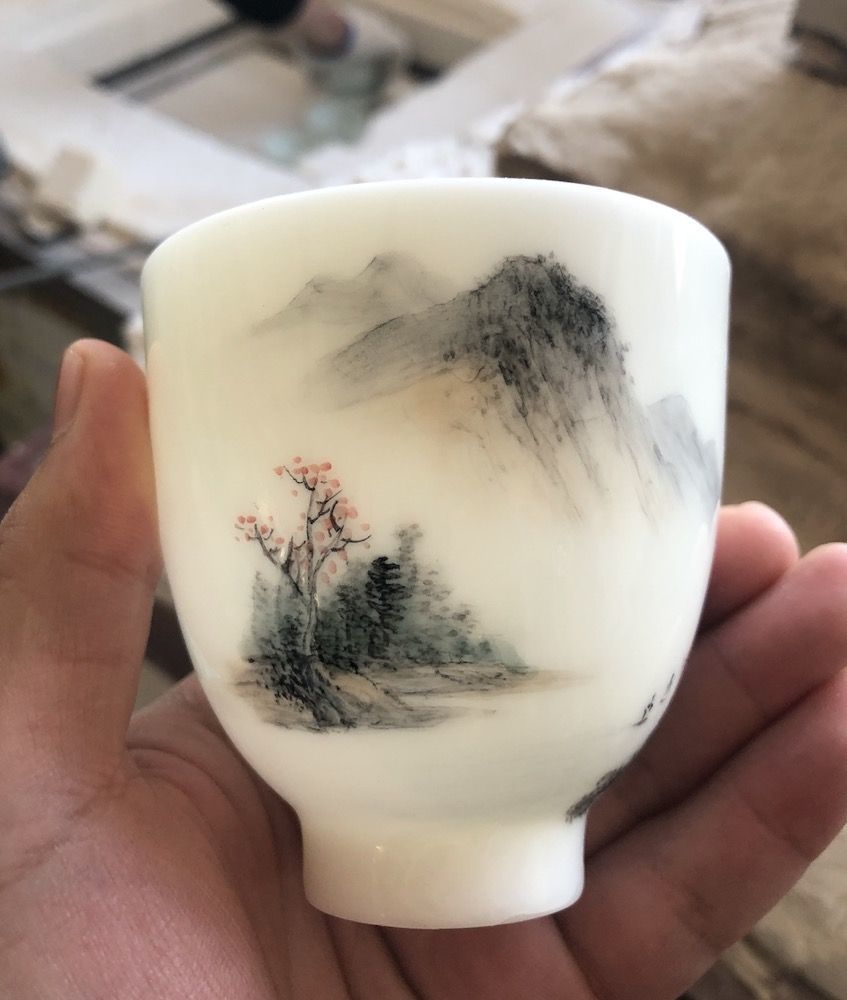 老總的祝福下,送了一個喝水杯子,那就來說說感受吧:山水畫是工匠大師老羅的精湛手法,通過色彩調配,以及顏色還原真實的比例手繪上去的,這一個杯子前后手繪的周期要花3天時間,為了多方面的細節(jié),要不斷的深入化修正和改進;在陽光照射下晶瑩易透,娓娓動人,似乎山水畫的花草樹木就盤活在眼前,為人之震驚,對于小編來說真是愛不釋手。