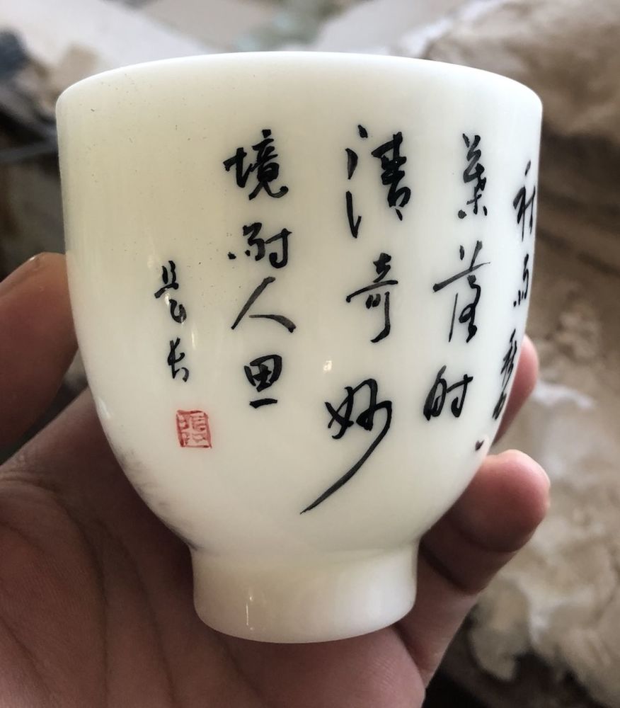 手繪山水畫飲用杯:詩詞