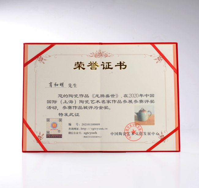 作品《龍騰盛世》榮獲2020年中國(guó)(上海)陶瓷藝術(shù)名家作品展金獎(jiǎng)。