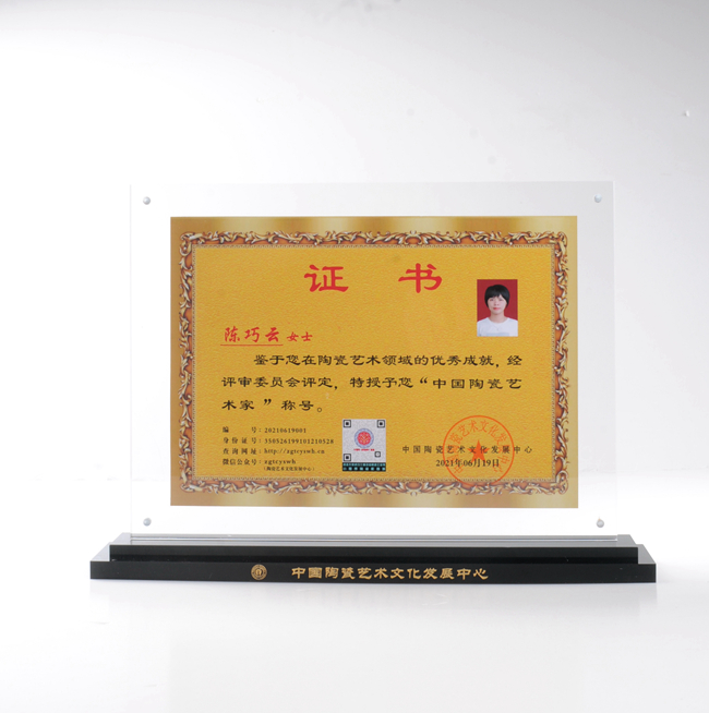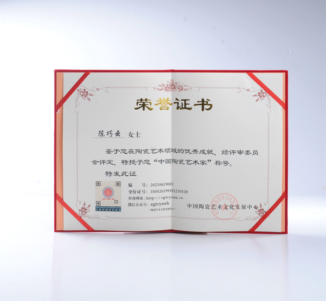 陳巧云,出生于世界陶瓷之都德化,中國陶瓷藝術家、中國陶瓷藝術非遺傳承人、優(yōu)秀創(chuàng)作坊工作室、福建省工藝美術師、中國陶瓷藝術文化發(fā)展中心會員。