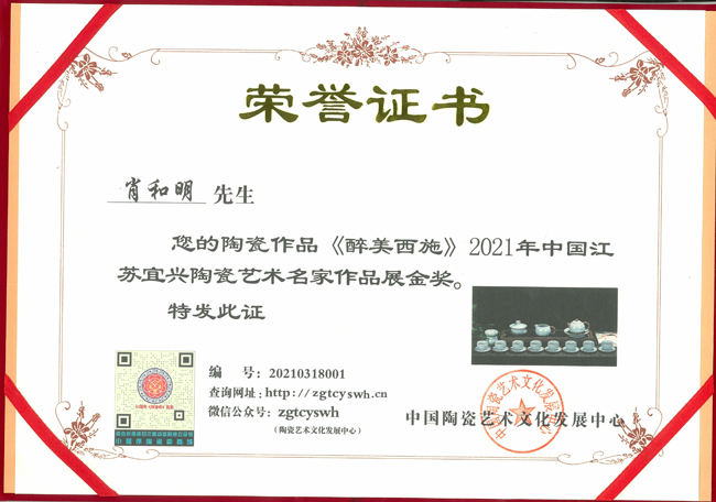 《醉美西施》榮獲2021年中國(guó)江蘇宜興陶瓷藝術(shù)名家作品博覽會(huì)金獎(jiǎng)