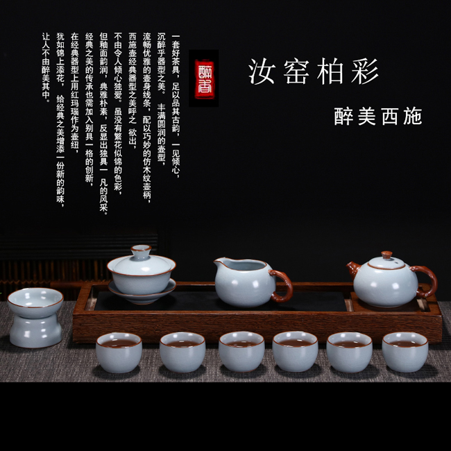 一套好茶具,足以品其古韻,一見(jiàn)傾心,沉醉乎器型之美。 豐滿圓潤(rùn)的壺型,流暢優(yōu)雅的壺身線條,配以巧妙的仿木紋壺柄,西施壺經(jīng)典器型之美呼之 欲出,不由令人傾心獨(dú)愛(ài)。雖沒(méi)有繁花似錦的色彩,但釉面韻潤(rùn),典雅樸素,反顯出獨(dú)具一 凡的風(fēng)采。 經(jīng)典之美的傳承也需加入別具一格的創(chuàng)新,在經(jīng)典器型上用紅瑪瑙作為壺紐,猶如錦上添花, 給經(jīng)典之美增添一份新的韻味,讓人不由醉美其中。