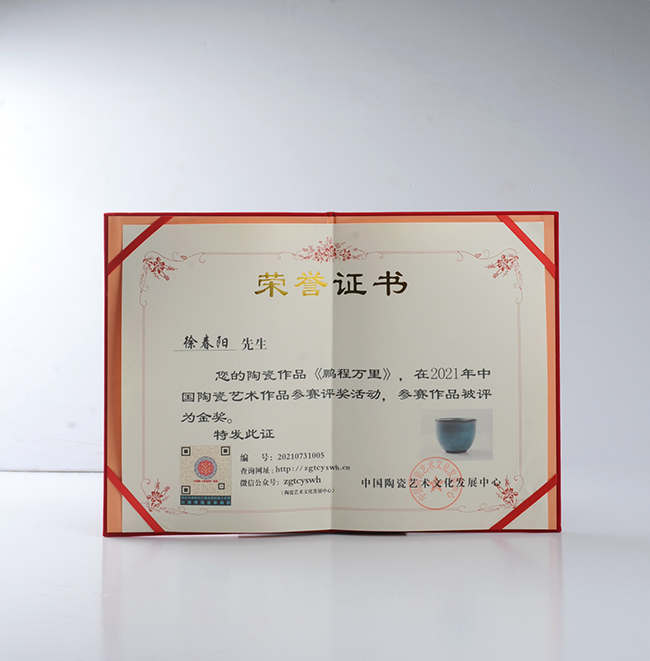 作品《鵬程萬里》獲榮2021年中國陶瓷藝術(shù)作品評比金獎。