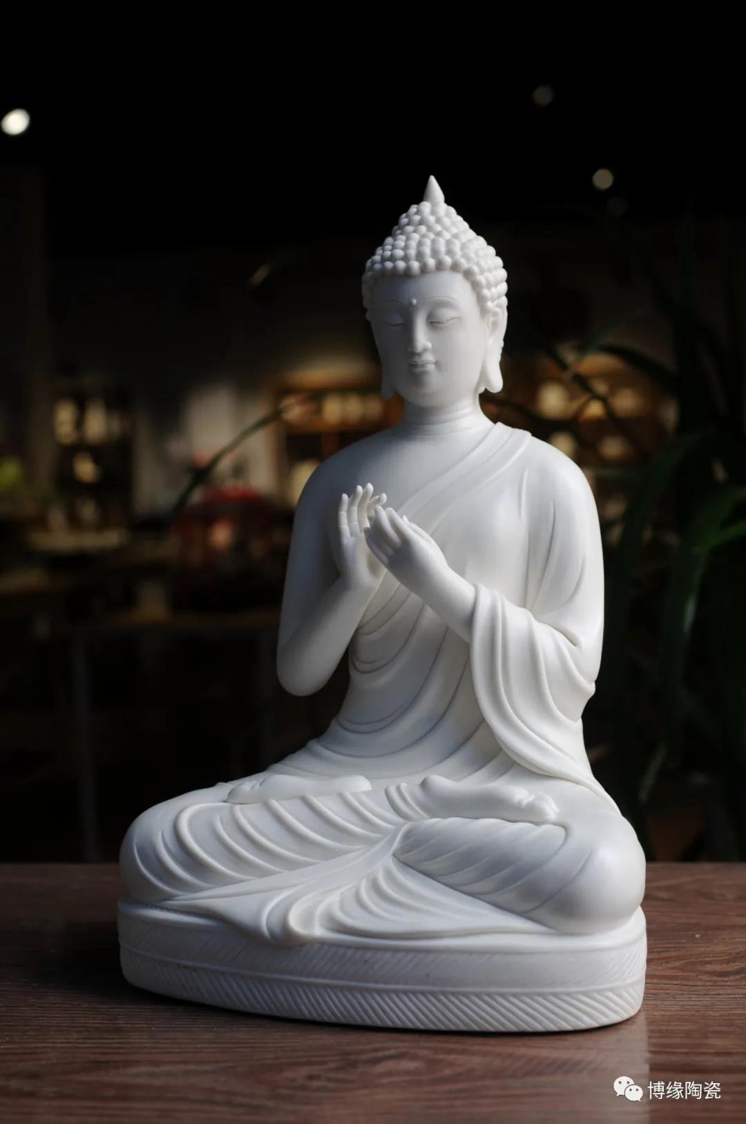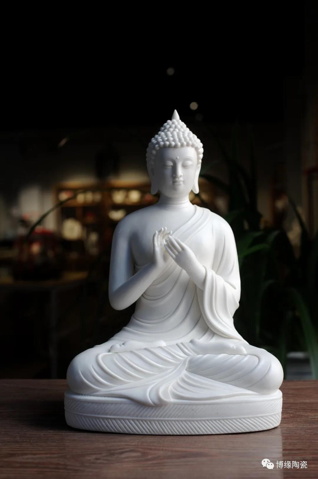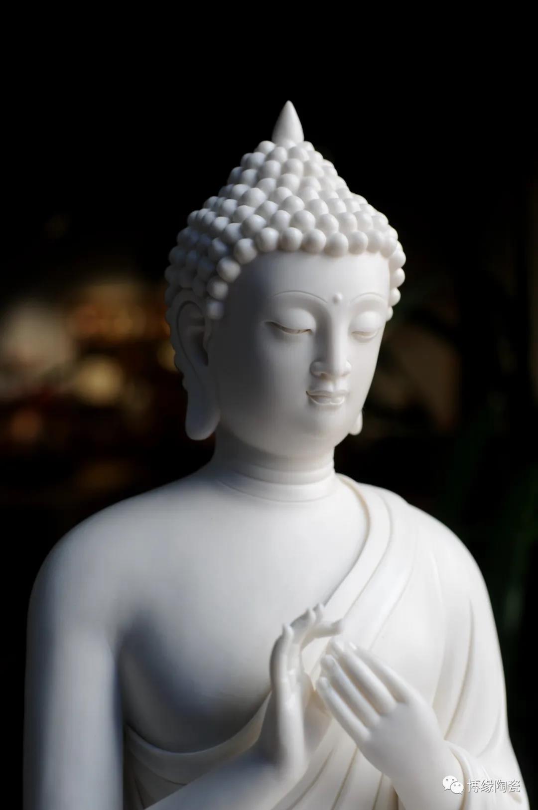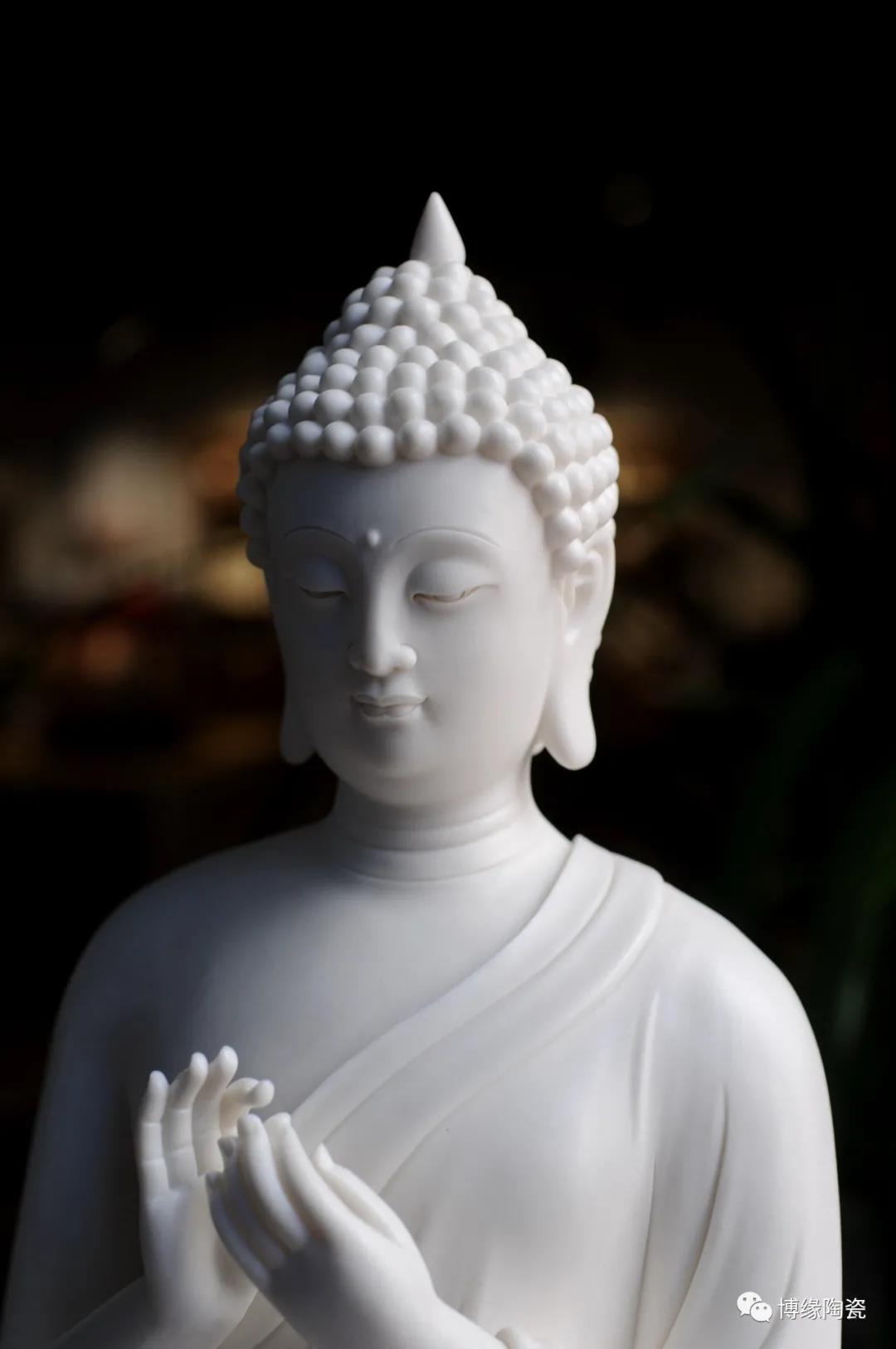 德化瓷器,以白瓷為最;白瓷之中,又以佛像為最。德化白瓷所塑佛像有性格鮮明、造型優(yōu)美、神態(tài)逼真、風(fēng)格洗練的特點。有一種單純的雕塑美和原材料的質(zhì)地美,最能體現(xiàn)佛教樸素、平和的思想。 早在明代德化白瓷佛像就名聲在外,一代“瓷圣”何朝宗佛像名作流傳后世,成為世界各大博物館收藏的珍品,更對佛像雕塑史上產(chǎn)生深遠(yuǎn)的影響,形成“何派”雕塑,其開創(chuàng)的捏、塑、雕、刻、刮、削、接、貼八字技法延用至今。何派佛像雕塑注重于細(xì)節(jié)之美,精益求精,故而十分著意衣紋的刻畫,使線條流暢,翻轉(zhuǎn)自然。觀其佛像,仿佛有春風(fēng)拂面,衣袂飄揚的出塵之感。