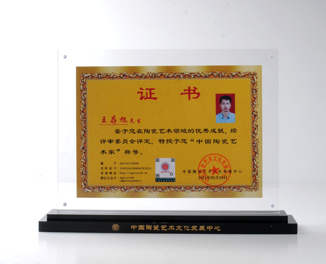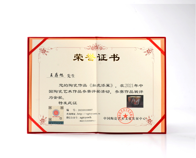 經(jīng)過10多積累與創(chuàng)作,王存旭創(chuàng)作出上百款經(jīng)典作品,多件作品榮獲各評比金獎,《國色西施》榮獲2019年中國國際(北京)陶瓷藝術名家作品展金獎,《如虎添翼》榮獲2021年中國國際(北京)陶瓷藝術名家作品展金獎等。