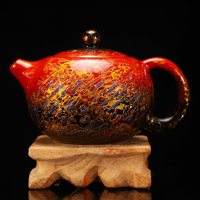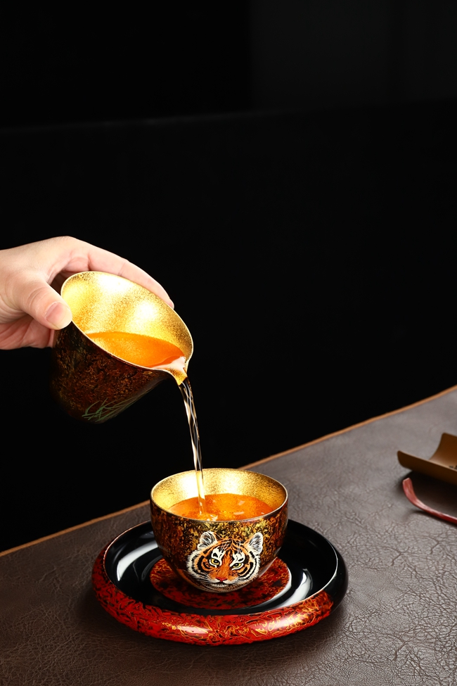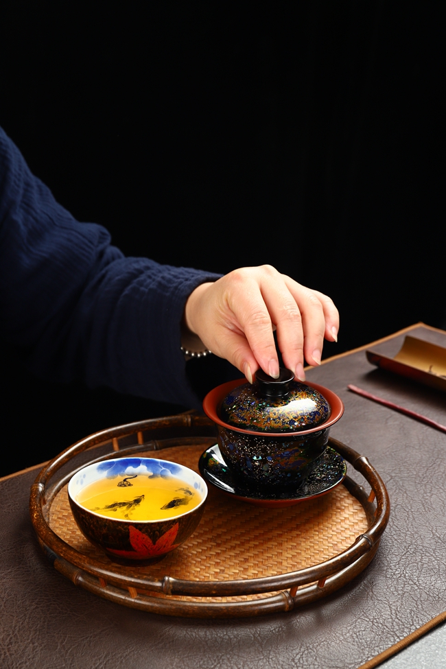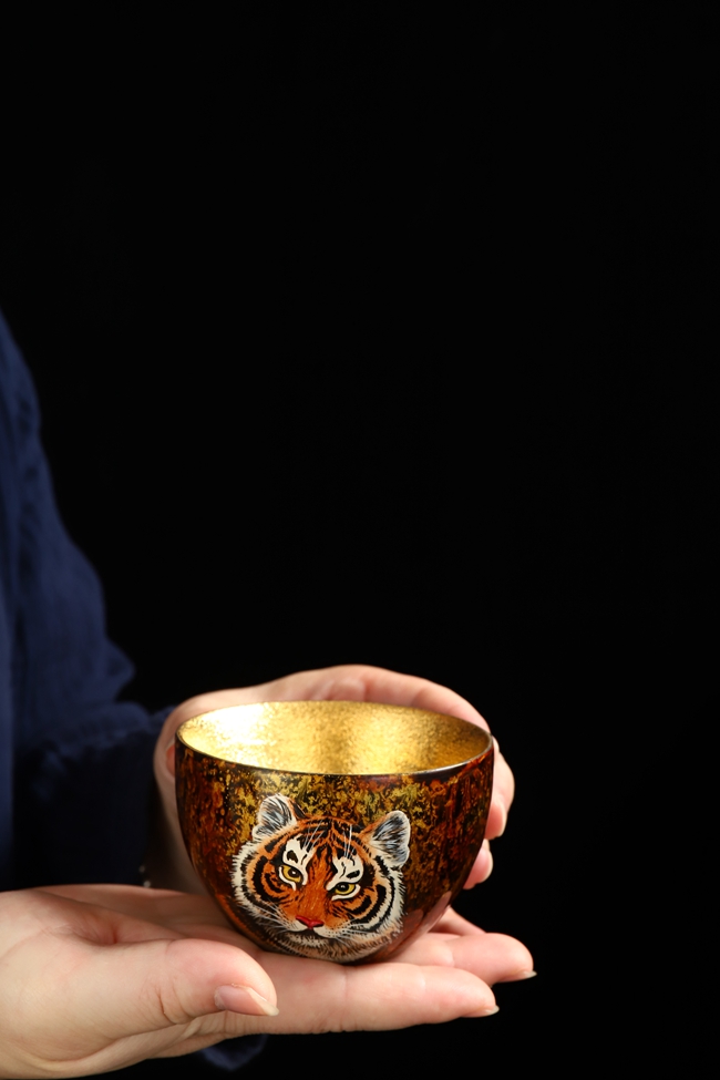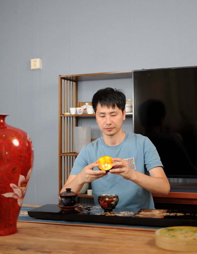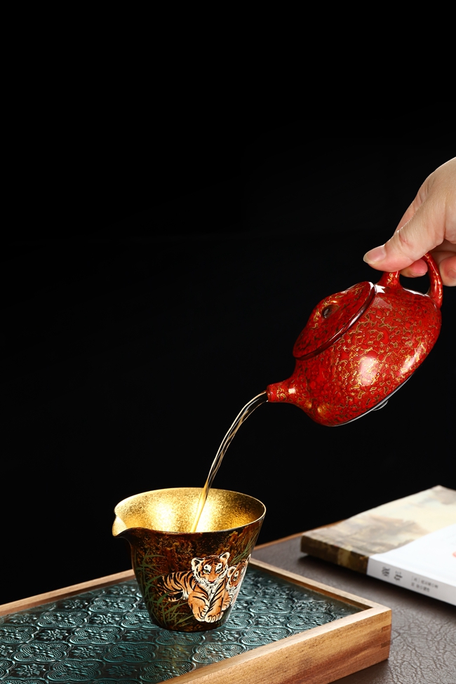 王存旭深愛當?shù)靥厣a(chǎn)業(yè)德化瓷器。積極創(chuàng)新尋找漆畫技法表現(xiàn)更多的“可能性”致力研究德化白瓷與漆器結(jié)合。創(chuàng)作出漆藝功夫茶具,茶道配件、單杯茶器等一系列產(chǎn)品。漆藝與茶器的碰撞,將現(xiàn)代的時尚元素、色彩、造型與傳統(tǒng)漆藝技法相“混搭”實用與審美并重,使漆藝真正走出搏物館,走入大眾生活。體現(xiàn)豐富文化內(nèi)涵和更高藝術價值。