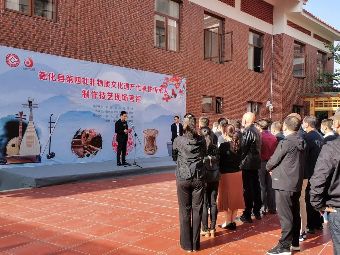 11月5日,德化縣第四批縣級非物質(zhì)文化遺產(chǎn)代表性傳承人技能考評活動(dòng)在臻峰文創(chuàng)園舉行?h政府副縣長洪仰行到場指導(dǎo)。