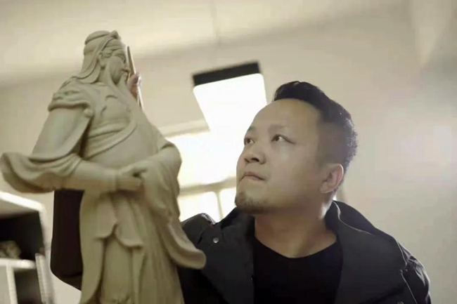 "Like our hometown, Dehua has a profound cultural heritage and is a paradise for ceramic art creation.In 2013,Introduced by the art colleagues of Quanzhou Vocational College of Arts and Crafts,Zhang Chenyi ,from Anyang, Henan, came to Dehua,settled in "Porcelain Valley fairyland" in Dehua County,began to chase the dream of ceramic art creation,he combined his hometown "Sanxingdui", bronzes and other cultural elements to create works, enriching the theme of firewood creation.
