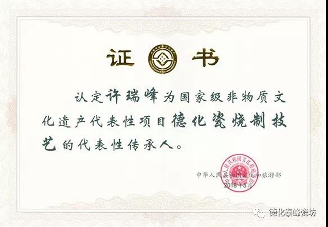 非物質(zhì)文化遺產(chǎn)(德化瓷燒制技藝)國家級傳承人