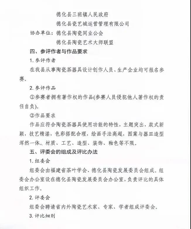 在我縣從事陶瓷茶器具設(shè)計創(chuàng)作人員、生產(chǎn)企業(yè)均可報名參賽。