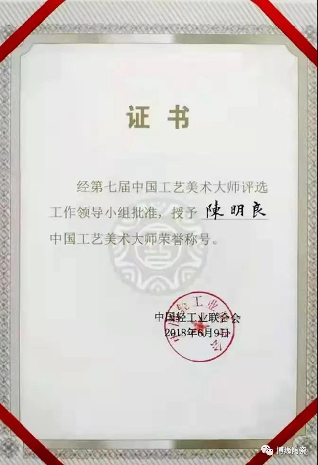 陳明良,中國工藝美術大師,中國陶瓷藝術大師,享受國務院特殊律貼,第五批國家非物質文化遺產(chǎn)《德化瓷燒制技藝》代表性傳承人,國家一級技師,高級工藝美術師,職業(yè)藝術品鑒定師,福建省工藝美術大師,中國陶瓷工業(yè)協(xié)會常務理事,福建省古玩工藝協(xié)會常務副會長,德化縣收藏家協(xié)會會長,泉州工藝美術職業(yè)學院客座教授,泉州市特色專業(yè)領軍人才,德化縣明玉陶瓷研究所藝術總監(jiān)!