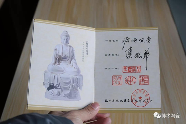 2017年被評為“福建省非物質(zhì)文化遺產(chǎn)項(xiàng)目德化瓷燒制技藝代表性傳承人”;