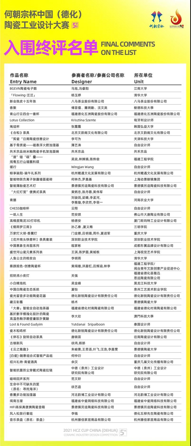 2021 HCZ Cup China (Dehua) Ceramic Industrial Design Competition after the initial evaluation, a total of 100 works shortlisted for re-evaluation. Recently, the competition re-evaluation work successfully concluded, after the professional jury strict and meticulous review, a total of 50 pieces stand out, successfully shortlisted for the final evaluation.