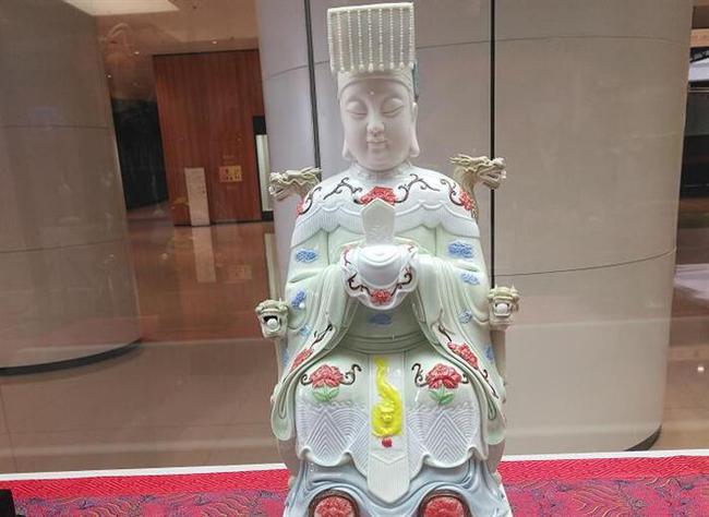 活動(dòng)現(xiàn)場(chǎng),展示了20件以“媽祖”為題材的德化陶瓷藝術(shù)作品,分別出自有“中國(guó)瓷都”之稱的福建省德化縣多位陶瓷工藝大師之手,代表了享有“中國(guó)白”“象牙白”“中國(guó)瓷器之上品”美稱的德化瓷器的發(fā)展水平,是中國(guó)國(guó)家博物館收藏的陶瓷藝術(shù)作品,也是媽祖文化與陶瓷文化的最佳有機(jī)結(jié)合。