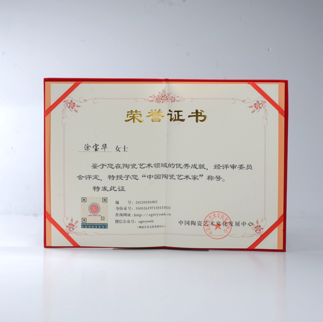 德化上千年的陶瓷文化,給予了德化白瓷以豐厚的滋養(yǎng),涂寶華從小出生于瓷都德化,便耳濡目 染,自小對德化陶瓷產生深厚興趣,1992年-2002年開始師從福建省工藝美術大師鄭燕婷, 2003- 2008年在飛天陶瓷廠從事陶瓷雕塑工作,2008年至今在德化御芳閣陶瓷研究所從事雕塑工作并任藝術 總監(jiān),經過近30年創(chuàng)作與積累,其熟練掌握陶瓷雕塑設計、上釉、手拉胚、燒制、捏花等技藝,2012 年成立御芳閣陶瓷研究所,專業(yè)從事傳統(tǒng)雕塑、捏花、茶具等生產制作,創(chuàng)作出一系列優(yōu)秀作品,其 作品深受廣大收藏愛好者喜愛,多件作品榮獲各評比金獎等。