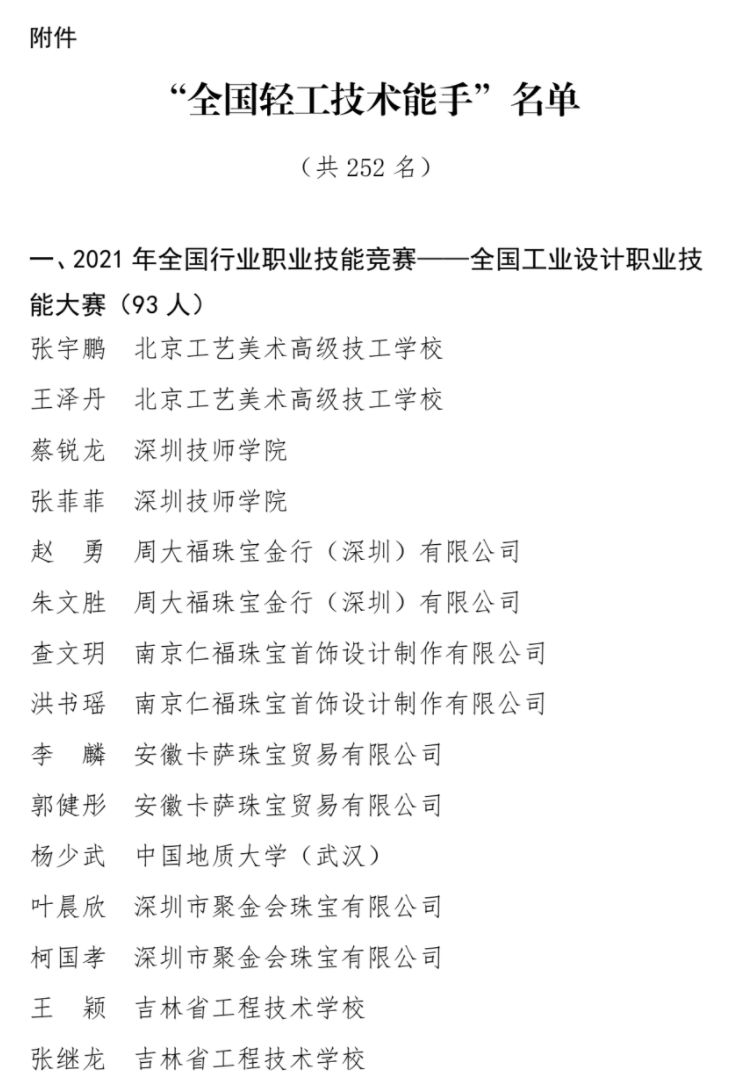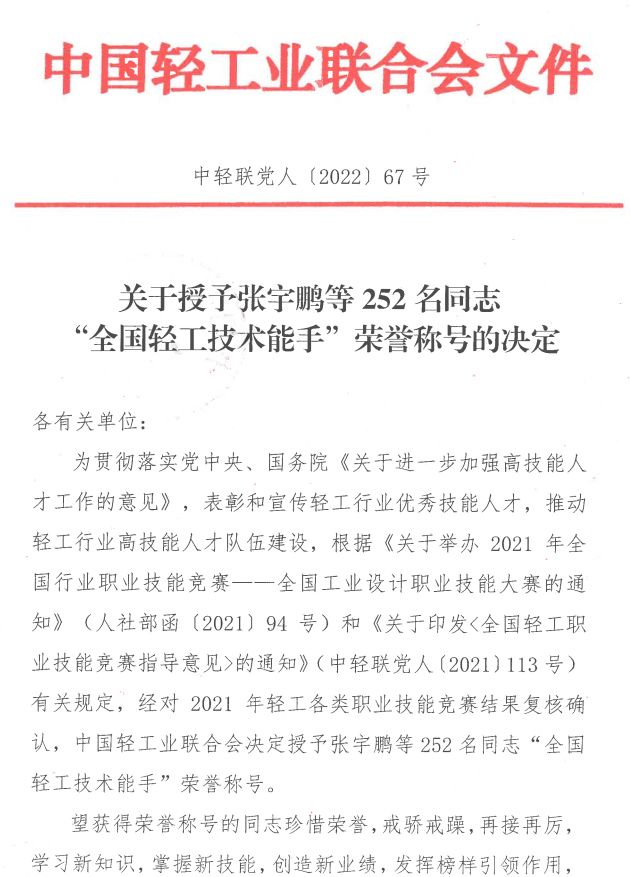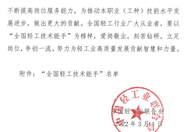 “全國輕工技術(shù)能手”榮譽(yù)光榮榜