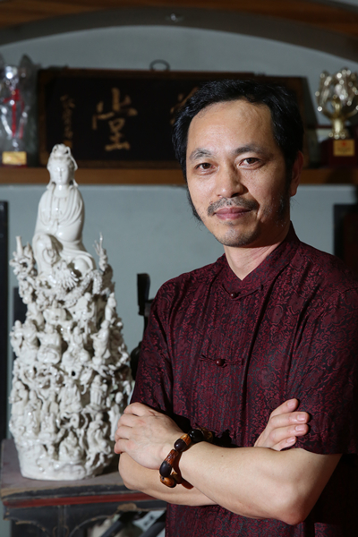 陳明良,1963年7月出生于瓷都德化陶瓷世家,師從中國著名民間瓷塑藝人陳其泰,1987年創(chuàng)辦“鳳池瓷雕廠”,先后在“中央工藝美術(shù)學(xué)院陶瓷雕塑設(shè)計(jì)系”;“清華大學(xué)美術(shù)學(xué)院工藝美術(shù)系”;“中國藝術(shù)研究院”等進(jìn)修。陳明良是德化古陶瓷收藏領(lǐng)軍人,連續(xù)幾次榮登央視一、二、三套《尋寶》、《一槌定音》等欄目。2015年創(chuàng)辦“瓷藝堂”德化窯古瓷珍藏館,且對外開放,讓更多人們參觀鑒學(xué)。目前由泉州市人民政府授匾“優(yōu)秀工藝美術(shù)大師工作室” ,同時也是泉州市德化瓷燒制技藝傳習(xí)所重要基地。從藝近四十年來潛心于收藏德化窯古瓷研究與藝術(shù)創(chuàng)作,并編著《德化窯古瓷珍品鑒賞》、《明清德化白瓷》書。在理論學(xué)術(shù)研究和實(shí)踐創(chuàng)作的同時,將藝術(shù)探索、生活感悟、思想情感、傳統(tǒng)技藝中的精華提煉出來并賦予作品新的文化內(nèi)涵和新的藝術(shù)生命。陳明良不但在傳統(tǒng)人物雕塑做得出神入化而且日用器皿設(shè)計(jì)創(chuàng)作造型規(guī)整、材質(zhì)與形態(tài)美結(jié)合,相得益彰。