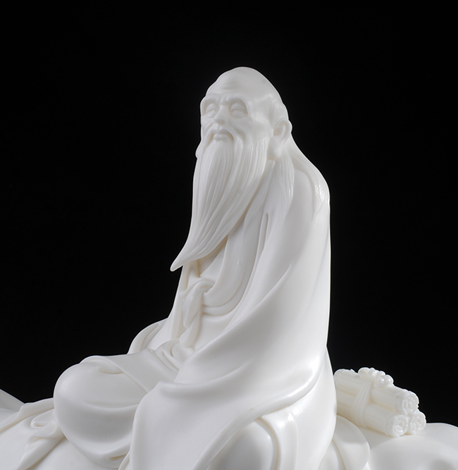圓勁有力,行云流水,精工質(zhì)感,展現(xiàn)瓷雕藝術(shù)的魅力,人物神形兼具。