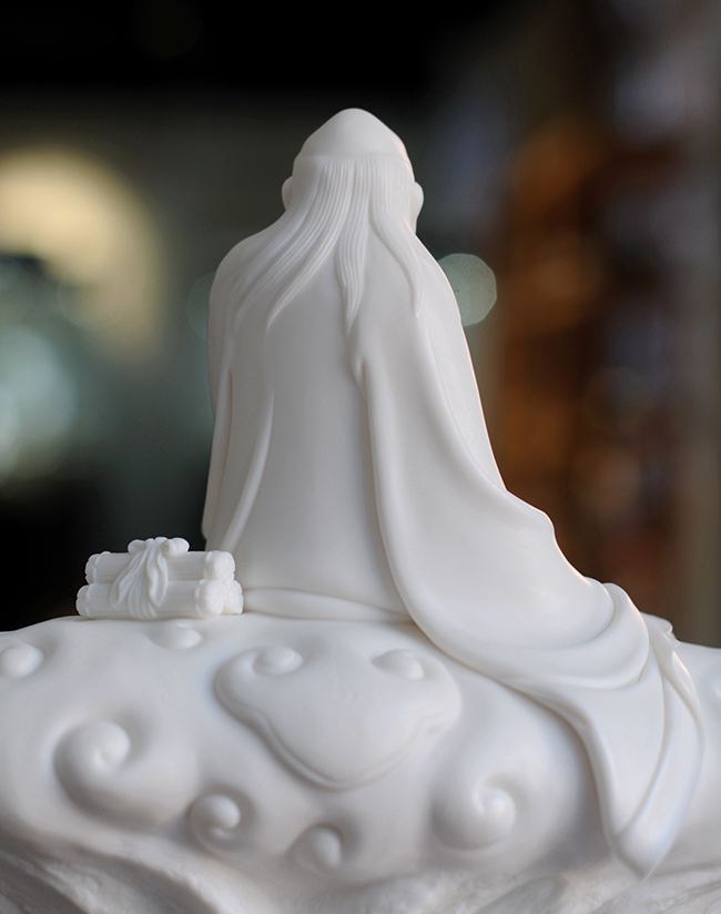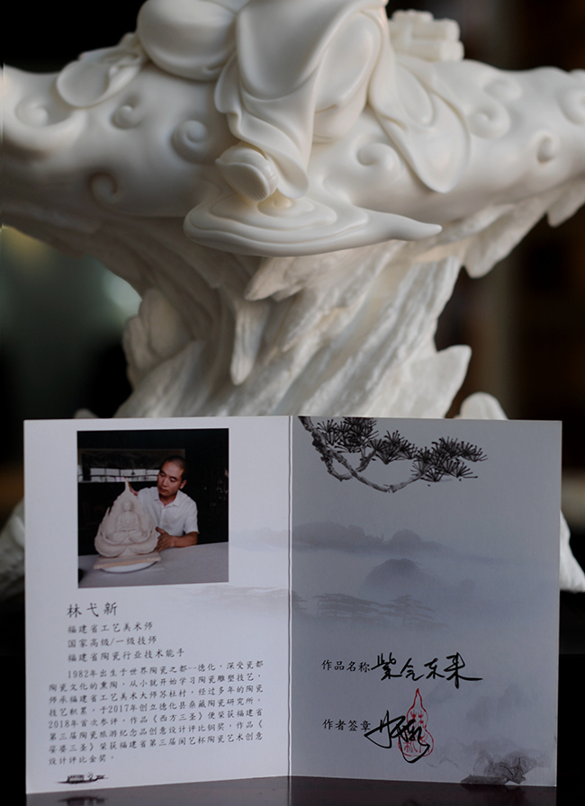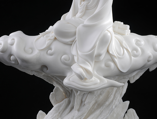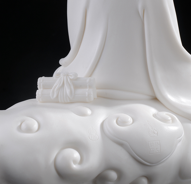 作品采用德化上等中國(guó)白瓷泥,胎體溫潤(rùn)如玉,通體潤(rùn)白潔凈