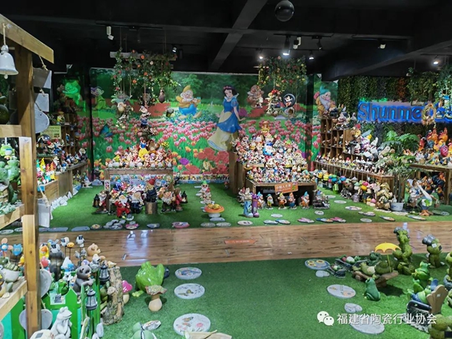 順美集團(tuán)高管鄭衍彬的文創(chuàng)藍(lán)圖里,打造一個(gè)“陶瓷界的迪士尼樂園”,是德化縣順美陶瓷文化世界的目標(biāo)。展廳內(nèi)展示的不同風(fēng)格、不同主題的童話人物陶瓷擺件,游客們只需悠游德化就可以感受童話世界不一樣的美好純真。