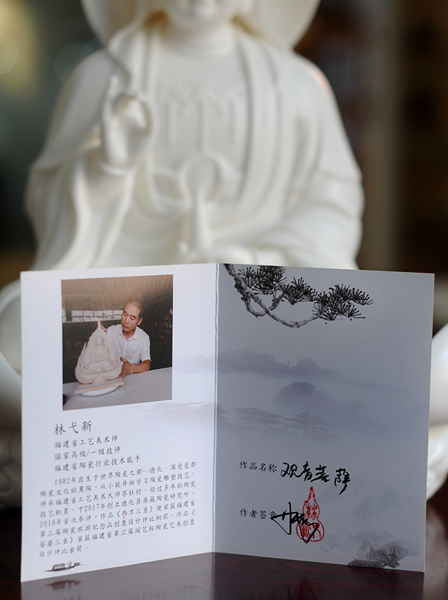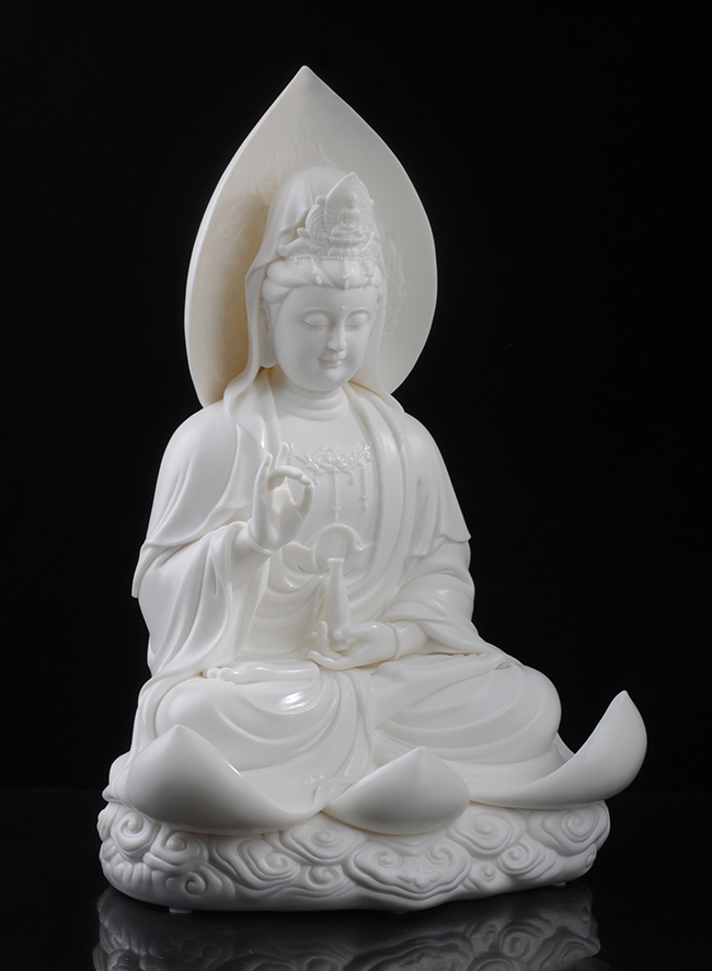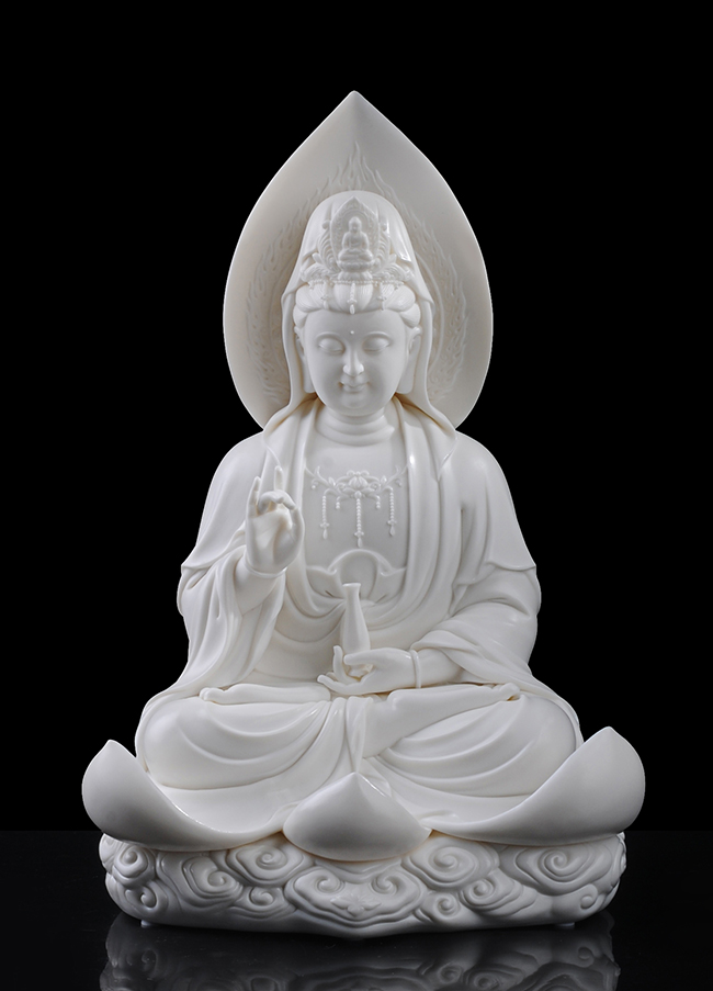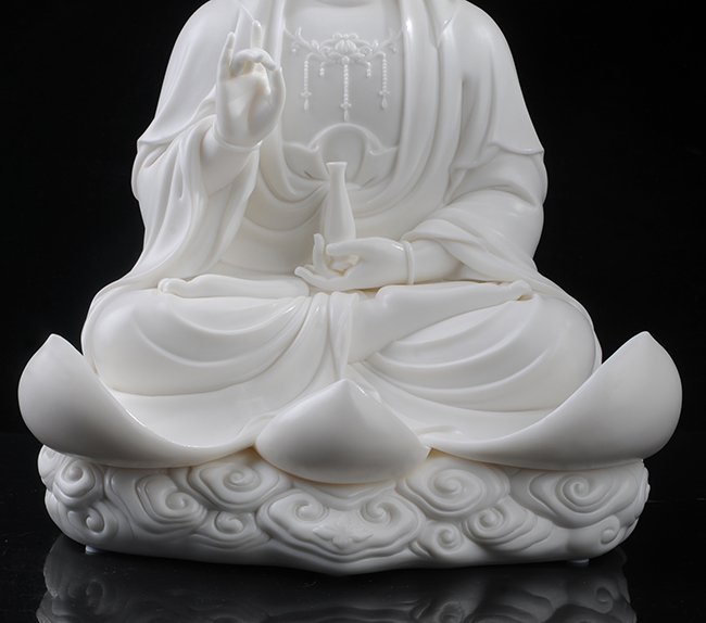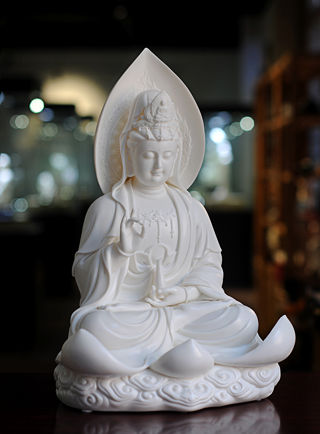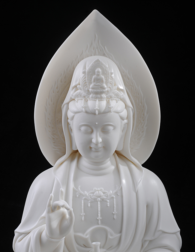德化瓷器,以白瓷為最;白瓷之中,又以佛像為最。德化白瓷所塑佛像有性格鮮明、造型優(yōu)美、神態(tài)逼真、風(fēng)格洗練的特點(diǎn)。有一種單純的雕塑美和原材料的質(zhì)地美,最能體現(xiàn)佛教樸素、平和的思想。