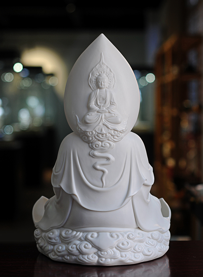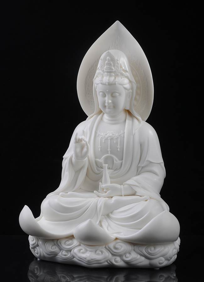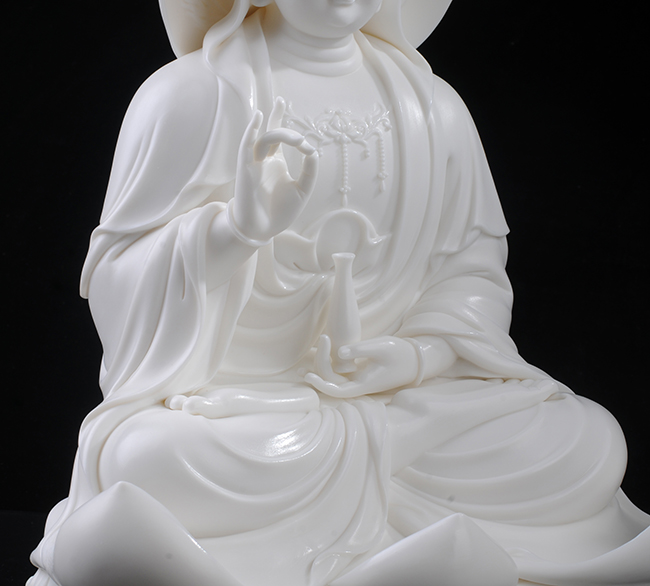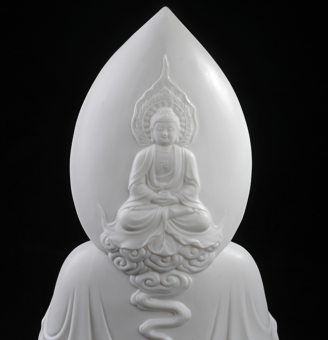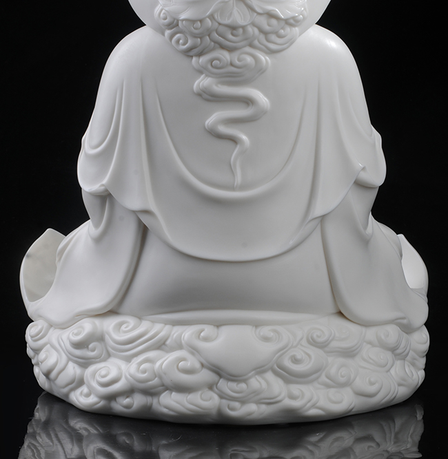 德化瓷器,以白瓷為最;白瓷之中,又以佛像為最。德化白瓷所塑佛像有性格鮮明、造型優(yōu)美、神態(tài)逼真、風(fēng)格洗練的特點(diǎn)。有一種單純的雕塑美和原材料的質(zhì)地美,最能體現(xiàn)佛教樸素、平和的思想。