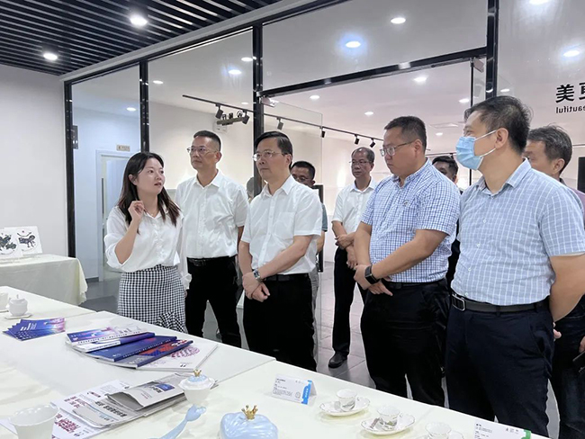 林向東主任一行參觀了研究院展廳,認真聽取了關于研究院發(fā)展歷程、產(chǎn)業(yè)服務模式、設計賦能陶瓷產(chǎn)業(yè)創(chuàng)新發(fā)展等方面的介紹;重點考察了研究院生態(tài)系統(tǒng),詳細了解了日用陶瓷智慧工廠,全球陶瓷設計交易與孵化平臺瓷匠集等重點項目運營機制,體驗了研究院的原創(chuàng)設計及爆款產(chǎn)品。
