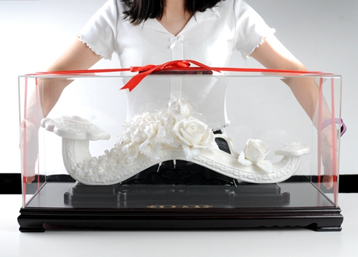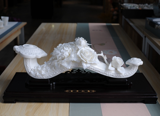 瓷藝品手工制作,捏花一絲不茍或薄如蟬翼,或嬌艷欲滴,如意上紋飾鑲嵌,賞心悅目,溫婉細膩的述說著千年不息的瓷文化,最終形成一件美輪美奐的瓷藝術作品。