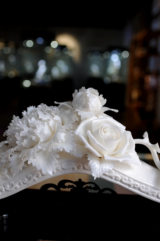 瓷花純手工捏制,細膩精致、薄如蟬翼、以假亂真,每片花瓣層層疊疊,繁復但線條流暢。手工精雕細琢,刀工精湛,線條清晰、簡潔、瀟酒、多變化,柔媚流暢,翻轉(zhuǎn)自然,展現(xiàn)瓷雕藝術的魅力。