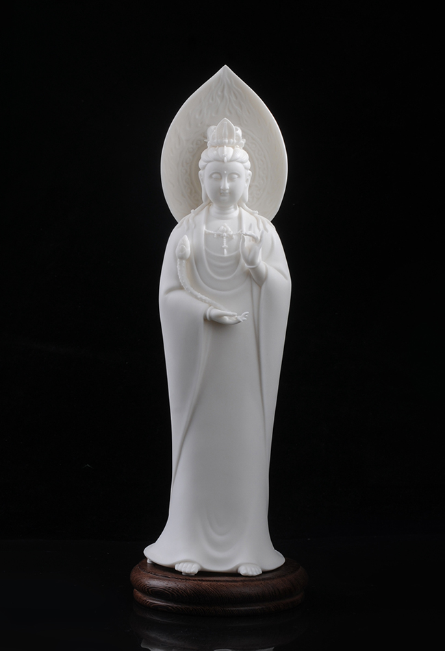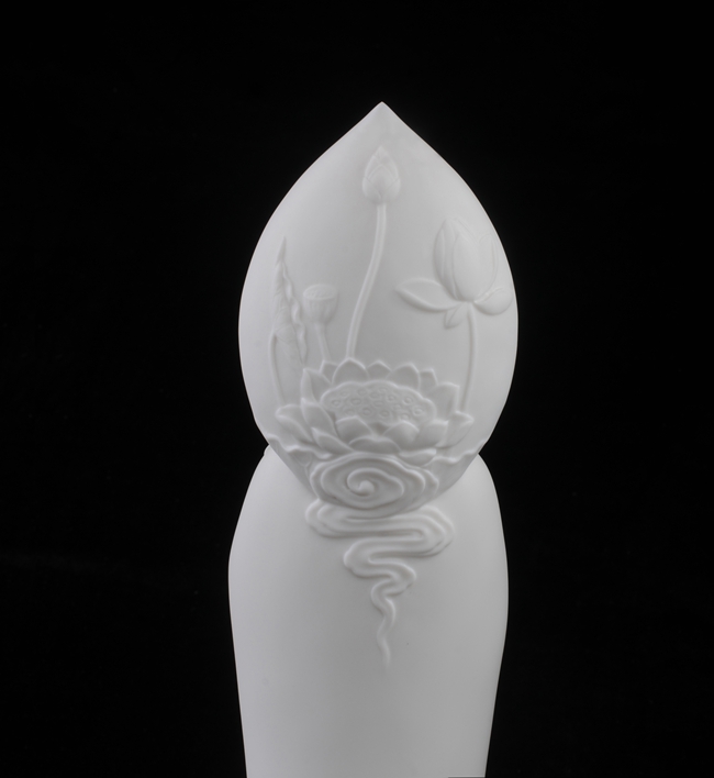 作品采用德化上等中國白瓷泥,千年傳承,國家非遺保護(hù)項(xiàng)目(德化陶瓷燒制技藝),胎體溫潤如玉,通體潤白潔凈,胎密質(zhì)堅(jiān)。
