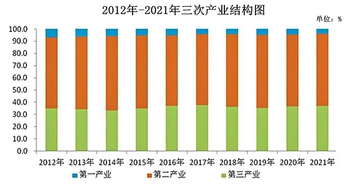 這十年,我縣三次產(chǎn)業(yè)結(jié)構(gòu)由2012年的6.8:58.4:34.9調(diào)整為2021年的3.8:59.3:36.9;第一產(chǎn)業(yè)增加值12.51億元,第二產(chǎn)業(yè)增加值194.25億元,第三產(chǎn)業(yè)增加值120.72億元,年均分別增長2.3%、9.7%和8.5%。2021年人均地區(qū)生產(chǎn)總值達(dá)9.78萬元,是2012年的2.1倍,年均增長8.6%。
