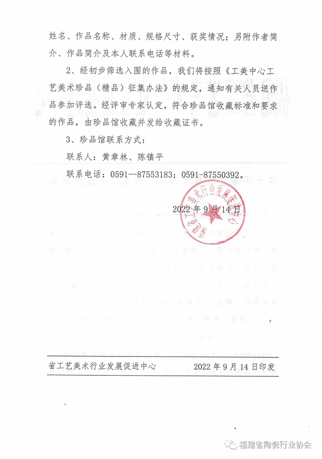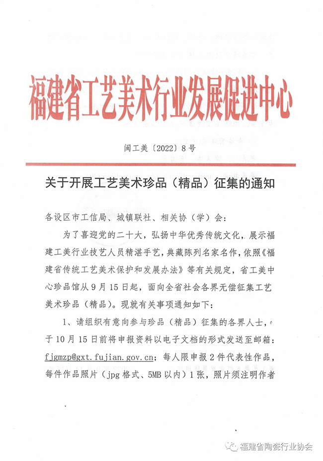 關(guān)于開展工藝美術(shù)珍品(精品)征集的通知