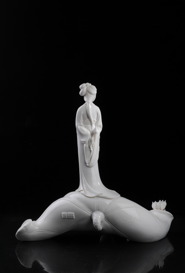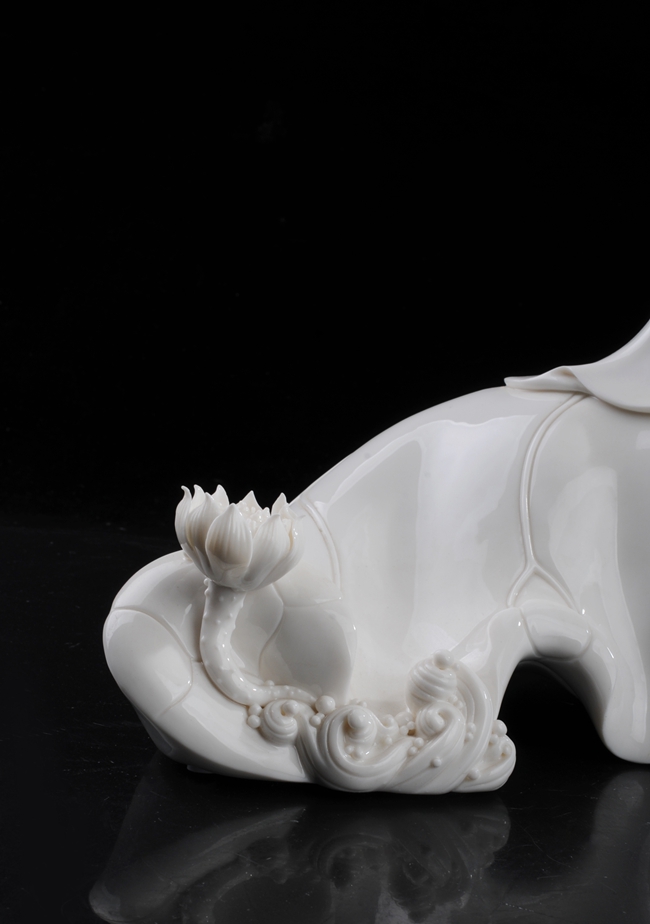 《相思為荷》作品由中國(guó)工藝美工大師林建勝設(shè)計(jì)創(chuàng)作。作品以德化溫潤(rùn)如玉的“中國(guó)白”為胎質(zhì),經(jīng)1300多度高溫?zé),胎體通透,溫潤(rùn)如玉,瓷感細(xì)膩。
