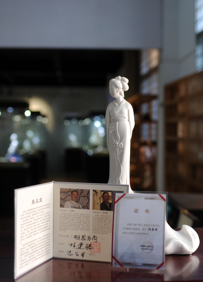 林建勝團(tuán)隊(duì)還被2017年金磚國(guó)家領(lǐng)導(dǎo)人會(huì)晤廈門市籌備工作領(lǐng)導(dǎo)小組辦公室授予“禮品研制貢獻(xiàn)獎(jiǎng)(入選作品團(tuán)隊(duì))”;被德化縣委、縣政府授予“金磚國(guó)家領(lǐng)導(dǎo)人廈門會(huì)晤籌備和服務(wù)保障工作先進(jìn)個(gè)人”。