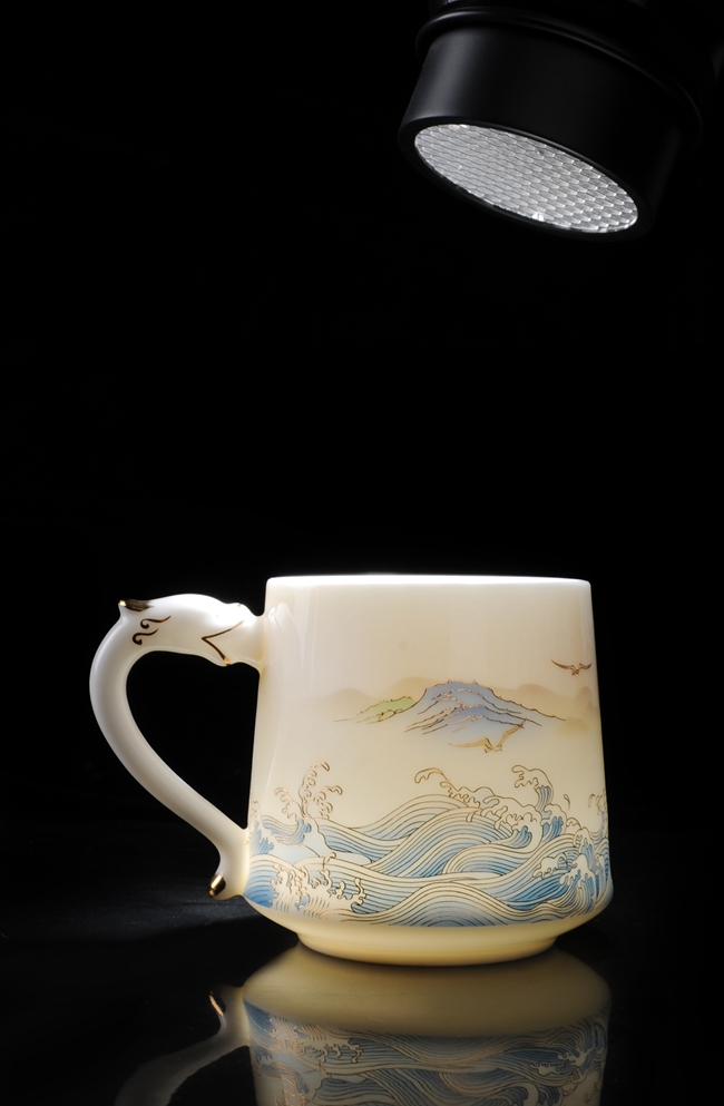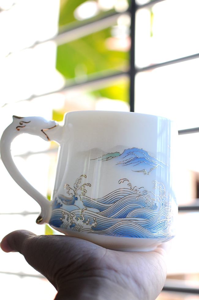 杯身溫潤光滑,手繪浪花、手工描金點綴裝飾,以傳統(tǒng)制瓷工藝制作,盡顯奢華,高端精致典雅,觀感俱佳