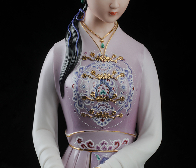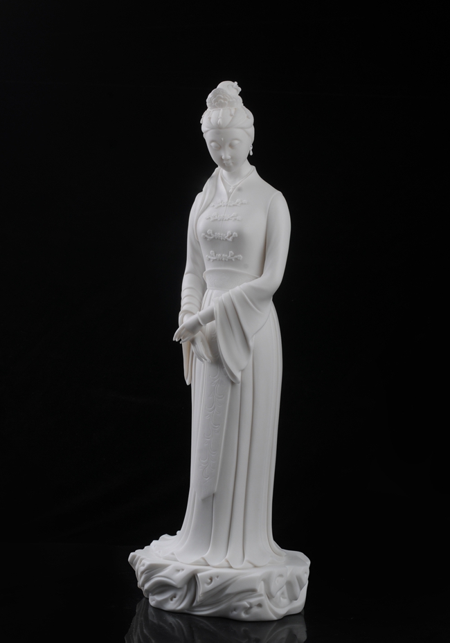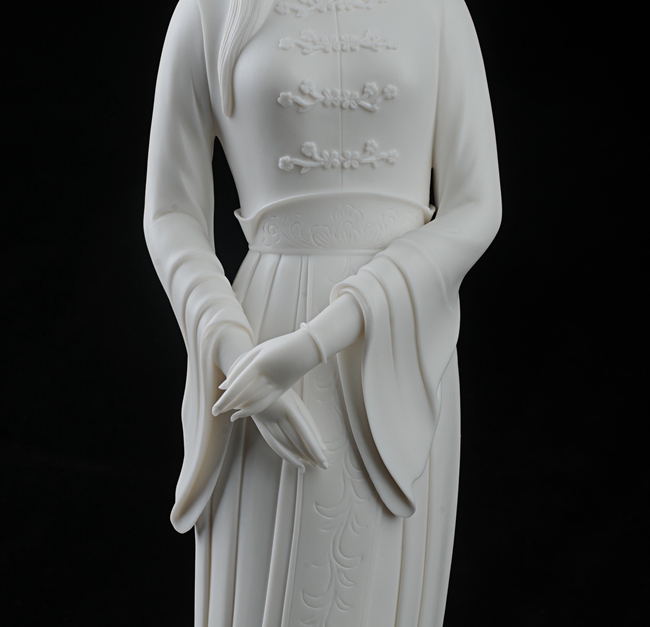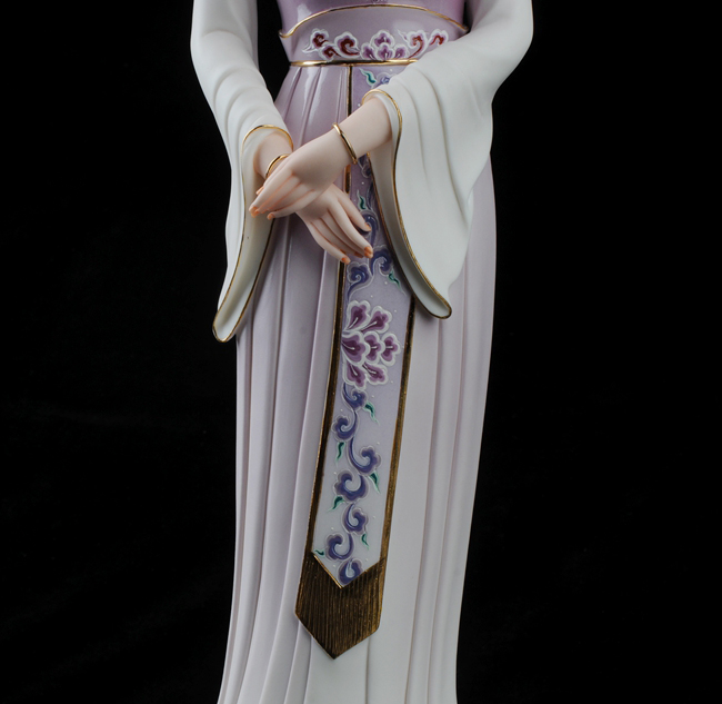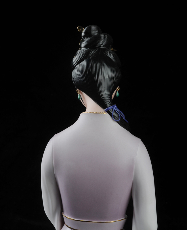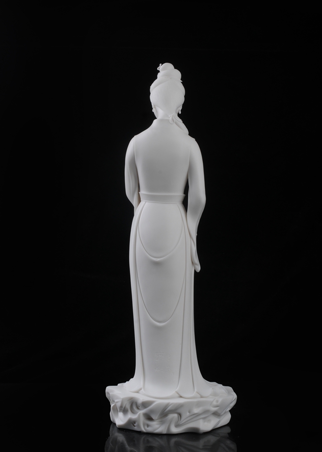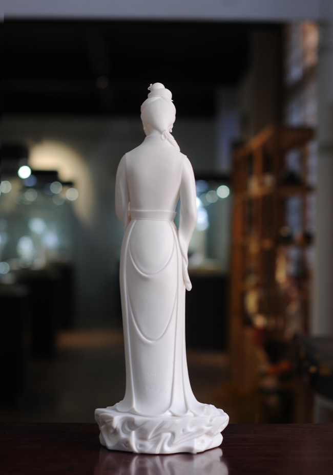《漢風(fēng)》由中國傳統(tǒng)工藝美術(shù)大師林玉芬設(shè)計(jì)創(chuàng)作。作品以德化溫潤如玉的“中國白”為胎質(zhì),經(jīng)1300多度高溫?zé),胎體通透,溫潤如玉,瓷感細(xì)膩。作品只見美人雙眸微垂,體態(tài)優(yōu)雅,雙手交叉輕輕擺放,溫柔可人,作品動(dòng)靜相生,栩栩如生,技藝傳承,頭飾、服飾、衣飾,裙擺飄逸生動(dòng),質(zhì)感強(qiáng)烈,精心塑造,所到之處無不精細(xì)贊嘆,足見大師在創(chuàng)作時(shí)的獨(dú)運(yùn)匠心,作品背面有中國傳統(tǒng)工藝美術(shù)大師林玉芬親筆刻簽及落款,是一件不可多得的收藏精品。是辦公、家居、書房裝飾擺設(shè)、禮贈(zèng)、收藏的好選擇。