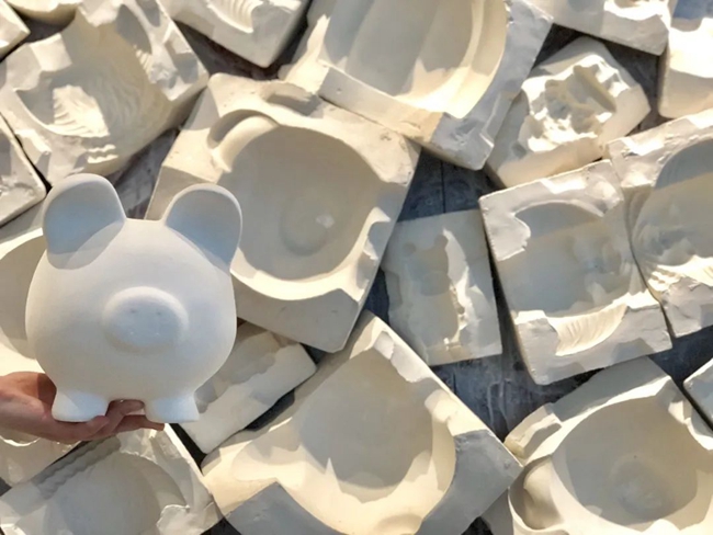 “一個(gè)石膏模具大概可以做出40只豬寶貝喲!”老師說道,“石膏模具是陶瓷生產(chǎn)中用來批量成型產(chǎn)品的工具。采用石膏作為模具的材料是因?yàn)槭嗑哂泻軓?qiáng)的吸水性,能夠使得模具內(nèi)壁的泥漿快速凝固而成型。當(dāng)石膏模具經(jīng)過多次注漿使用達(dá)到一定濕度后,便需要進(jìn)行模具烘干,以便模具再次循環(huán)利用。”