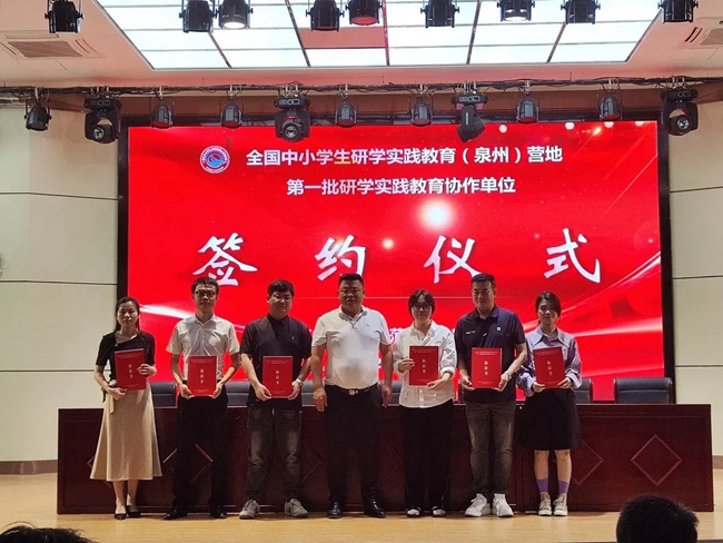 “此次簽約儀式既是研學(xué)實(shí)踐工作的再啟動(dòng),也是一次強(qiáng)強(qiáng)聯(lián)合。我們有信心將‘研學(xué)實(shí)踐’活動(dòng)打造成為晉江市一張靚麗的名片,開啟中小學(xué)生研學(xué)實(shí)踐教育發(fā)展新篇章。”晉江中小學(xué)生示范性綜合實(shí)踐基地主任李金錐說。