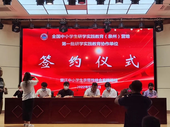 9月28日,全國中小學(xué)生研學(xué)實(shí)踐教育(泉州)營地——晉江中小學(xué)生示范性綜合實(shí)踐基地,舉行了第一批研學(xué)實(shí)踐教育協(xié)作單位簽約儀式。首批簽約單位包括晉江五店市傳統(tǒng)街區(qū)、順美陶瓷文化世界、福建清源山旅游投資有限公司等12家。