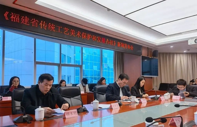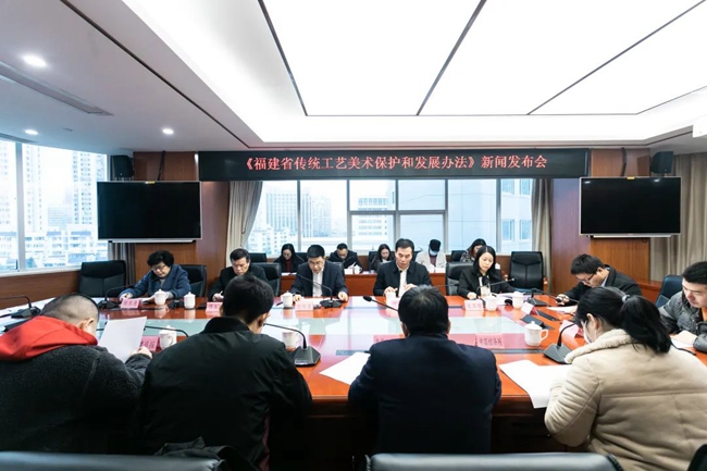 2022年2月18日,福建省工業(yè)和信息化廳召開新聞發(fā)布會,廳黨組成員、副廳長陳傳芳介紹《福建省傳統(tǒng)工藝美術(shù)保護和發(fā)展辦法》修訂過程及主要內(nèi)容。