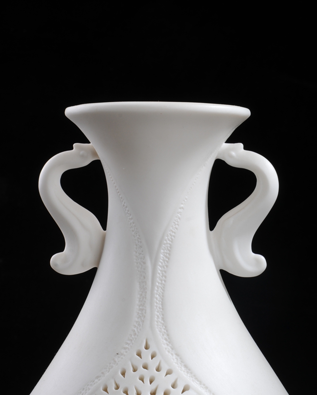 花瓶自古以來是瓷器里最常見的擺件之一,在家里擺放花瓶寓意平安吉祥;ㄆ康钠”與平”同音,把花瓶擺放在客廳內(nèi)代表著家人平平安安;ㄆ康臄[設(shè)要與周遭的環(huán)境相吻合,創(chuàng)意感足的特色花瓶,也更能營造出與眾不同的氣氛,而德化白瓷通花花瓶便是一種獨特的手工藝花瓶。