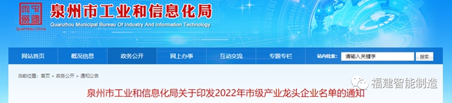 泉州市工業(yè)和信息化局關(guān)于印發(fā)2022年市級產(chǎn)業(yè)龍頭企業(yè)名單的通知