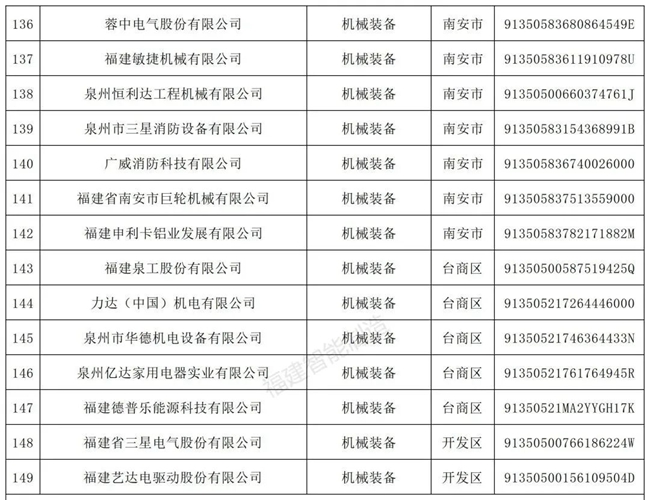 2022年泉州市級產(chǎn)業(yè)龍頭企業(yè)名單(機械裝備、家居建材、工藝制品)
