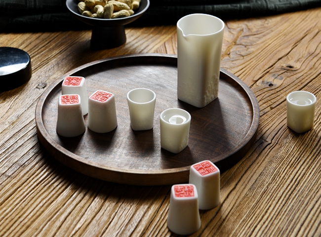 設(shè)計說明:四海一家兩杯酒具采用中國白瓷為材料,杯身海浪圖案代表的“四海一家”的寓意同海絲文化完美契合,產(chǎn)品器型采用天圓地方的方圓元素設(shè)計而成,寓意敬畏天地,道法自然,也指沒有規(guī)矩不成方圓;器型的底部采用完全平面著地,方便客戶篆刻印章或圖文的私人定制。