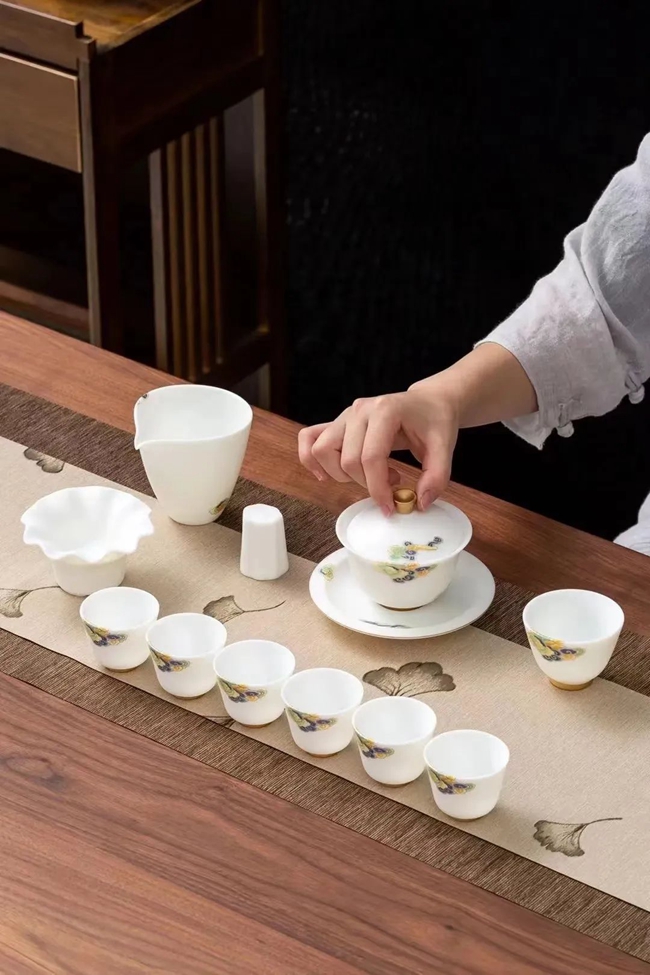 在瓷藝城,各大高端陶瓷品牌銷售展廳向來(lái)者展示著自己的“瓷”魅力:成藝陶瓷的“萬(wàn)花不落地”茶壺壺身由青花瓷、琺瑯彩花與描金白瓷組成,既有清新淡雅的古韻風(fēng)味,又盡顯雍容閑雅姿態(tài);韻麗陶瓷公司的《天香富貴》瓷板畫上牡丹綻放,花瓣是雅致的鵝黃色,漸變自然,工藝高超;金馬車陶瓷公司獨(dú)創(chuàng)的“弘一心經(jīng)杯”深諳禪意美學(xué),弘一大師的《般若波若密心經(jīng)》手稿鋪展于白瓷杯上,樸拙圓滿,一派莊重典雅。