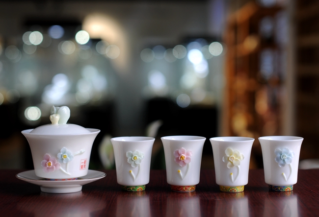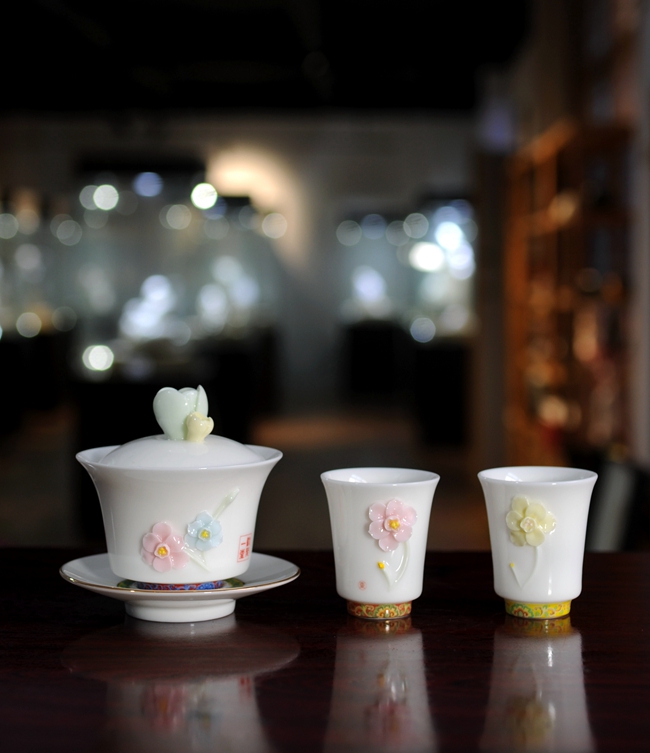 《芳華》由工藝美術(shù)大師設(shè)計(jì),精選優(yōu)質(zhì)高嶺土,經(jīng)1300多度高溫?zé)贫,瓷質(zhì)溫潤(rùn)似玉、透光性強(qiáng),胎骨潔白,作品采用手工捏花制作配結(jié)合琺瑯彩設(shè)計(jì),整套作品清新雅致,禮盒包裝,精美上檔次,是品茶、家居、禮品好選擇。